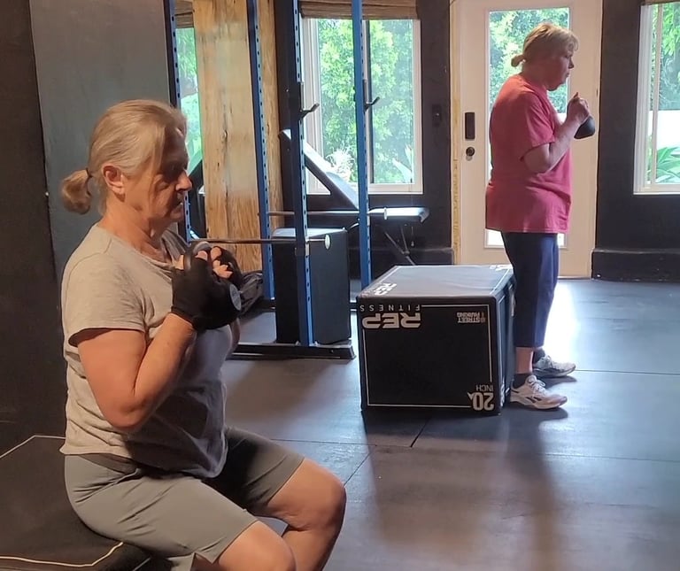 We modify every workout to fit your current fitness level and personalize it to your goals. With a focus on safe, efficient movement and a foundation of strength that supports the aging female body, we help you build confidence, reduce pain, and move through midlife with strength, energy, and grace.